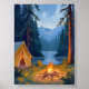 Camping Trip Forest Campfire Tent Watercolor Poster