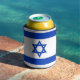This can cooler pays homage to Israel's cultural heritage and national identity, featuring elements reminiscent of its iconic flag. The design prominently displays a blue Star of David centred between two horizontal blue stripes on a white background, symbolising Judaism and the Jewish people.