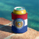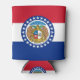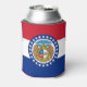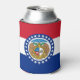 This can cooler pays tribute to Missouri's rich cultural heritage and natural beauty, featuring elements reminiscent of its iconic flag. The design prominently displays a field of red, white, and blue vertical stripes, with the Missouri state seal centred, showcasing symbols such as a grizzly bear, a crescent moon, and the Great Seal of Missouri.
