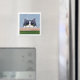 Whimsical cat art fridge magnets make great gifts for cat enthusiasts. Magnet featuring a sad cat peering through a window with rain poring down all around! Created from an original painting © 2008 Lisa Marie Robinson
