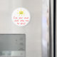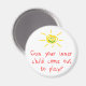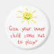 Share a little humour with this funny magnet that says "Can your inner child come out to play" with a fun smiling sun and crayon writing.
