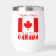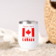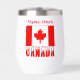 Personalised thermal wine tumbler featuring snow capped letters reading CANADA found underneath the Canadian Flag. Add your name to personalise the look or create a gift for Canada Day. The Canadian flag has a white centre with a red maple leaf inside. One the right and left of the white area are two red ones. Terrific for family reunions, travel groups, and clubs. Fun gift for any occasion or event. Design shows on two sides.