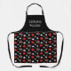 Apron featuring a maple leaf and curling rock pattern in red, white and grey on black background with customizable message. Perfect for curlers and curling fans.