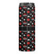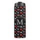 Thermal tumbler featuring a maple leaf and curling rock pattern in red, white and grey on black background. Perfect for curlers and curling fans. Customise with your initial.