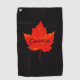 Celebrate being Canadian on Canada Day with this bright red black country maple leaf golf towel. Customise your script. Image copyright Marg Seregelyi Photography.