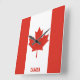Canada Flag Dazzling Patriotic Square Wall Clock in the colours and the elements of the Canada national flag covering the front of the clock. National flag colours are complemented with the text "Canada" on the bottom. Text is fully customisable using "Customise it!" feature. Feel free to change it, remove it or add your own. This charming design is the stunning gift and the great show piece on the wall. © CountriesOfTheWorld