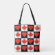 A fun all-over print tote bag for patriotic fans of the country of Canada. With the a unique chequered heart pattern inspired by the Canadian national flag. Makes a fun gift idea for Canadian friends and family, or anybody who loves Canada.