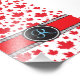 Deconstructed Canada flag featuring red Canadian maple leafs placed at random around a stunning black and red monogram button studded with diamonds. Great contrasting colours and intricate design. All images and artwork ©allmonograms store.