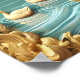 Two majestic Canada geese stand prominently on a serene riverbank, surrounded by a tranquil procession of lush, weeping willow trees that drape elegantly over the peaceful waters where ducklings gently paddle. Golden flowers bloom on ornate frames, adding a touch of whimsy to the twilight scene.