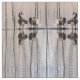This animal fabric features a geometric abstract pattern of migrating Canada Geese sitting on a log in a shallow pond. The brown, black and white markings are reflected in the water. The pale blue water ripples create a fascinating vertical design of reflected tree trunks.