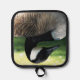 Safely handle baking trays, cookie sheets and muffin tins from the oven with this pot holder with black trim that features the wildlife photo image of a resting Canada Goose. Select your pot holder backing style.