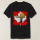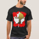 Red background with a large white maple leaf, and a gold image of a hockey player. Add text if you like, to make it special! Available in adults and kids sizes at greenbaby!