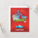 Canada map illustrated travel poster featuring a map and a classic blue car.