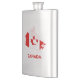 The product is a good size and came exactly as it was pictured. The lid is not attached to the flask, which could be dangerous on drunken nights... The print came out surprisingly well and looks very sharp. Would definitely recommend.
