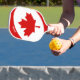 Display some Canadian patriotism on the pickle ball court with this paddle that features the iconic red Canada maple leaf. The red and white design is identical on both sides except that one side has a place to type in your name.