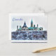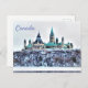 A great keepsake or souvenir postcard, the Canadian Parliament Buildings as seen from across the Ottawa River, north shore of Gatineau (Hull) Quebec, Canada. The Parliament Buildings are the seat of the Federal government. The tall tower with clock face is the Peace Tower. A large part of these buildings, aka the Centre Block, burnt down in 1916 and were reconstructed in the Gothic Revival style, finishing with the Peace Tower in 1927. The round building with brown pointed roof is the Parliamentary Library, the only edifice that survived the blaze. The Library is done in Late Victorian style. The buildings are sandstone, and the big rock they're sitting on (Parliament Hill) is a limestone outcropping. The roofs of the buildings are copper - as time goes on they tarnish and become brown, then green. Usually there's some construction or cleaning going on but in this picture, taken in early spring of this year, you get a nice overall view of the structures without the scaffolds. The Ottawa River is open in the middle due to the current, but frozen towards shore. It forms the border between the two Canadian provinces Ontario and Quebec. This design is great as souvenir of Canada, for friends and family, a lovely view of an Ottawa landmark from the shores of French Canada ... eh, Quebec. Photo by M Sylvia Chaume, Quebec, Canada.
