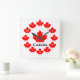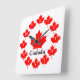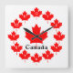 Canada Red Maple Leaf Pattern w Snow Fun Canadian Square Wall Clock