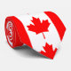 A bold repeating pattern of the bright red Canadian maple leaf, white background and red stripes. The image is rotated so that the stripes are diagonal, giving this neck attire an overall lively dynamic energy.