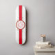 A calligraphic red maple leaf design with interlaced vector outlines is set on a gold bordered red stripe against a white background. It's bilingually captioned with Canada Since 1867. Easily edited and personalized.