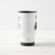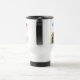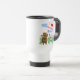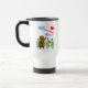 Travel mug with my artwork of a beaver character holding a sign that says "I heart Saskatchewan" with a red heart and flowers.