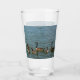 Canadian Geese, a gander, a goose and their goslings, on lake water with your personalised greeting, Lake, lakefront cabin or lake house name and your Family Name all customisable on this beautiful and functional photographic Lakefront glasses. Canadian Geese mate for life and in this photography the two larger parents are seen with their young brood of smaller goslings. The distinctive colouring of the Canadian Geese with their black head and neck, white cheeks, white under its chin, brown body, white bottom and black tail is on display against the blues and green of the lake's water in this beautiful wildlife family portrait. This is original bird photography of Lake Norman in North Carolina, USA by JLW_PHOTOGRAPHY.
