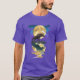 I give wanted to give this a 4 instead of a 5 because these Basic DARK T0shirts run unexpectedly SLIM or Narrow. Which is great if you do not have a potbelly, but I have a paunch. It isn't the shirt's fault that I've got a beer belly. The design and shirt itself is a quality cotton shirt. The color is more of a deep purple, but still a very pretty color. The Basic DARK T-shirts run a bit SLIMMER than the Basic Ts. The neck is a fraction narrower (or seems to be narrower) also. I'm a paunchy middle-aged woman and my neck is 12 inches (31cm) thick and the neckline fell about the same as in the photo of the man, and I had the desire to tug it a bit. So if you're a thick necked man or like loose shirts, be aware these are slimmer shirts. Once I get rid of my lockdown paunch it'll look great. The shirt washed well in cold water with no apparent bleeding. We don't have a dryer, so it hung dry. Did not shrink. Love the colors and the design. The design looks smaller on my shirt than it does on the model on-line. But still, it looks good on the shirt. The printing looks as it does on the model, just the size seems fractionally smaller. Washed garment in cold water, hung dry and design appeared unaffected.