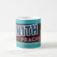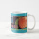 A vintage fruit crate label for Canadian peaches. It's repurposed on a mug.