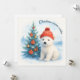 Canadian polar bear cab & Canadian maple leaf. Christmas warm wishes Holiday greeting card.