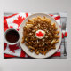 This is an AI generated image. I learned about Poutine and I had to make a design of it. I watched a video and learning that its french fries covered in gravy with cheese curds. With this design I wanted to have the plate on the Canadian flag. I liked that the wood under the flag is grey. I was not going to use the design because I thought the cup of coffee looked like it was on the plate. Then I thought well it does not look like the coffee cup is sitting on the plate. Oh, and I liked the maple leaf on the cheese curd in the middle of the plate.