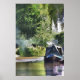Canal boats, known in the UK as narrowboats, were originally used to transport goods around the country. They are now used mainly for leisure and attract people from all over the world to enjoy our rural countryside. These boats look very pretty with their brightly coloured cabins, traditionally blue, red or green. Flowers and castle designs also adorn the more traditional boats. Digital watercolor.