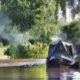 Canal boats, known in the UK as narrowboats, were originally used to transport goods around the country. They are now used mainly for leisure and attract people from all over the world to enjoy our rural countryside. These boats look very pretty with their brightly coloured cabins, traditionally blue, red or green. Flowers and castle designs also adorn the more traditional boats.