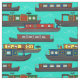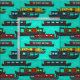 Funky turquoise blue fabric patterned with hand drawn canal narrowboats, barges and houseboats. The perfect fabric for your houseboat interior decor