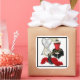Square sticker to match our "Cancan Costume 1" invitation with an image of a black wire corset, a dress form with a red cancan costume with a black feathered bustle, a black beaded necklace, a pair of black cancan boots, a red feathered boa, and a portion of a wall clock on white. Black border. See matching invitation and envelope. See the entire Cancan Sticker collection in the INVITES | Stickers & Labels section.