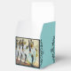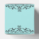 Square light blue classic style favour box with a beautiful vintage image, on the front and back, of four French Cancan dancers. Black scrollwork detailing on sides and top. See the entire Cancan Favour Box collection in the PARTY FAVORS section.