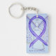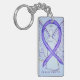 Awareness ribbon angel keychain features the art of a violet awareness angel painting. The art side notes "Cancer Awareness" and the reverse side states "I Hope & Support Awareness for a Cancer Cure!" Add your own custom words for personalised angel art cause awareness custom charm key chains! You can also remove the text for an art only angel pendant key chain. The violet awareness angel ribbon painting art keychains can be customised with personalised messages to make great awareness cause art key chains for fundraisers, awareness gifts, or other special events. Give this angel art keychain charm as an awareness ribbon gift for any occasion.