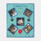 I designed this blanket for a friend of mine that was diagnosed with ovarian cancer. As she was preparing for her fight to beat cancer I tried to think of the perfect gift to give her. I started researching appropriate gifts to give someone fighting cancer. Many people going through chemotherapy commented that the comfortable blanket that they took with them to their treatments was the most comforting thing they had during their treatment. My friend absolutely loves her dogs and I know they bring her so much comfort everyday so including her dogs on the blanket really made it that much more personal and special. My dogs and cats are pictured on this blanket but should be replaced with your own pets or loved ones. The background teal colour represents ovarian cancer but can be changed to show the cancer your loved one is fighting. The blue colour of the frames can also be changed, as can the dark blue border to better match the cancer colour you have chosen.