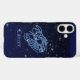 Phone case featuring the zodiac symbol for Cancer in soft silver blue, overlaid with the stars of the constellation, against a starry sky background graded from deep midnight blue to black.