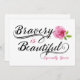 Encourage someone showing bravery in their fight against cancer with this unique calligraphy style typography design, with message in black and pink, "Bravery is Beautiful, Especially Yours." Design is accented with watercolor rose. Back has this message but can be customised with your own personal message.