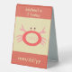 This awesome table tent sign features an outline of a red crab with pink legs and claws. The crab has large black eyes on stalks. There is also pink text that says Cancer inside the outline of the crab. This design is ideal for people with Birthdays Between 21 June and 22 July.