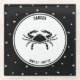Cancer Zodiac Sign, Black & White Glass Coaster