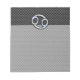 A silver chrome like Cancer zodiac symbol applique on a charcoal black carbon fiber print background. A modern urban racy design for a great custom birthday gift idea for him.