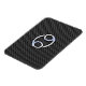 A silver chrome like Cancer zodiac symbol applique on a charcoal black carbon fibre print background. A modern urban racy design for a great custom birthday gift idea for him.