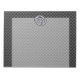 A silver chrome like Cancer zodiac symbol applique on a charcoal black carbon fibre print background. A modern urban racy design for a great custom birthday gift idea for him.