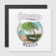 Cancun Mexico Beach travel logo of a fishing boat on a beautiful sandy beach in the sun.