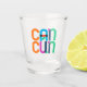 Wear it out loud Cancún. Bright primary colours with translucent overlays. Big block letters.
