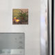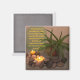 This magnet features a photograph of an aloe plant in a terracotta planter with smooth river stones and two low-level burning candles on an earth tone table and background. It features a Buddha quote, "Thousands of candles can be lit from a single candle, and the life of the candle will not be shortened. Happiness never decreases by being shared."
