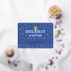 This card has a deep blue background, a scattering of stars, and says "Holiday greetings" on the front. The 'i' of Holiday is a candle shining brightly. The message in gold foil "From our family to yours" can be edited for your own preferred greeting. On the back is a similar scattering of stars, and text ready for you to personalise with your own message. (Or you can use the default "Wishing you light and joy and happiness in the coming year!")