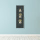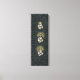 Tapestry woven motif depicting candlelight set on aqua green with black scroll work