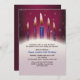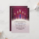 A party invitation for an adult's birthday celebration. The burgundy top has "twinkling lights" and faint bubbles as a background and features five candles in burgundy and blue hues.