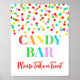 Candy bar sign poster for baby shower, bridal shower, birthday party or wedding with rainbow confetti pattern.